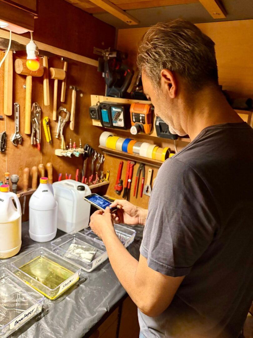Daha sonra basit bir karanlık oda kurup çektiğimiz kareleri banyoya alacağız.